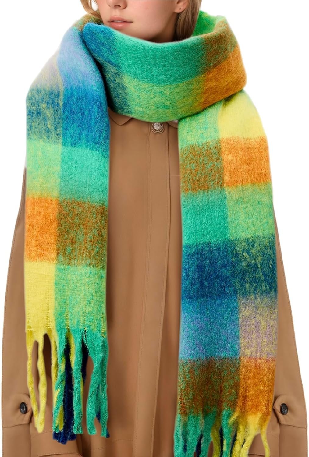 American Trends Womens Chunky Blanket Oversized Long Big Plaid Warm Wrap Scarf