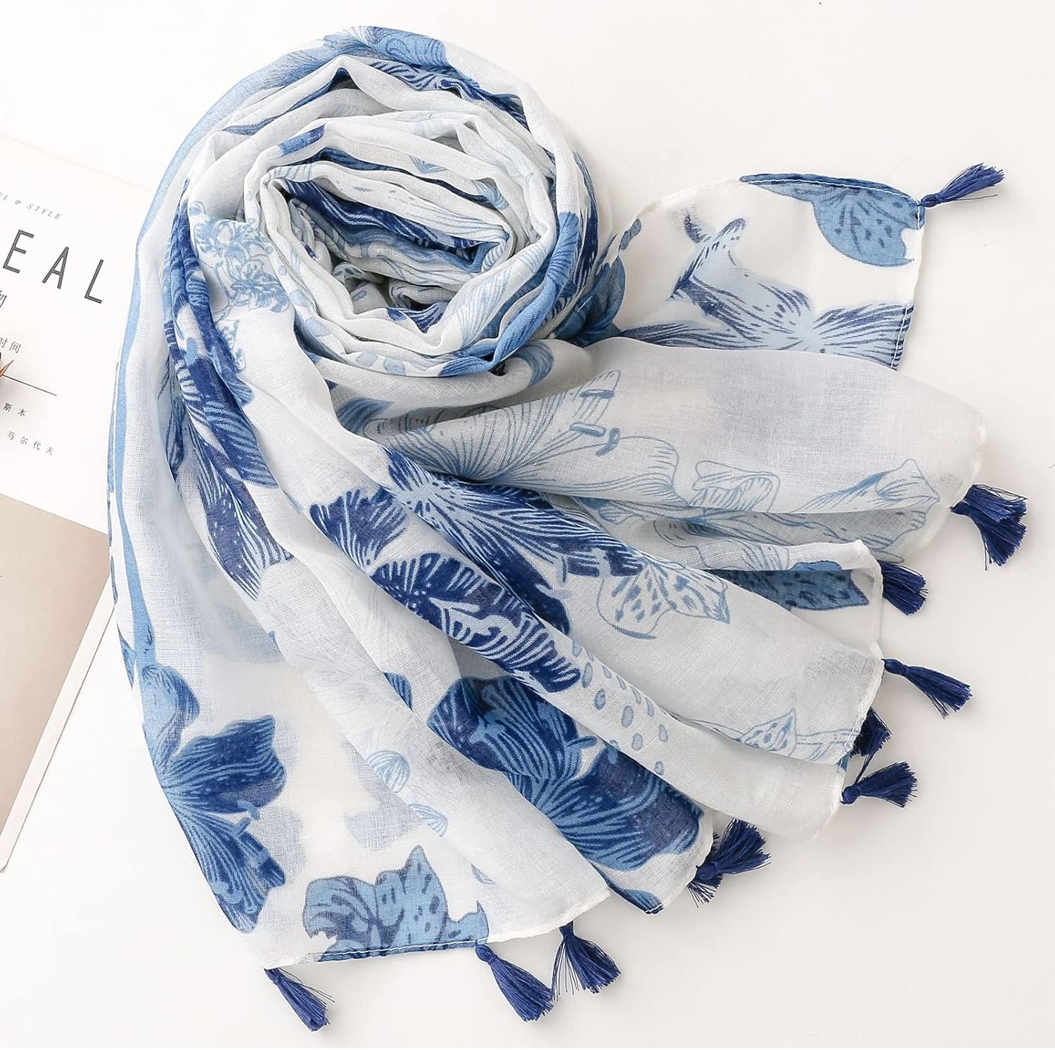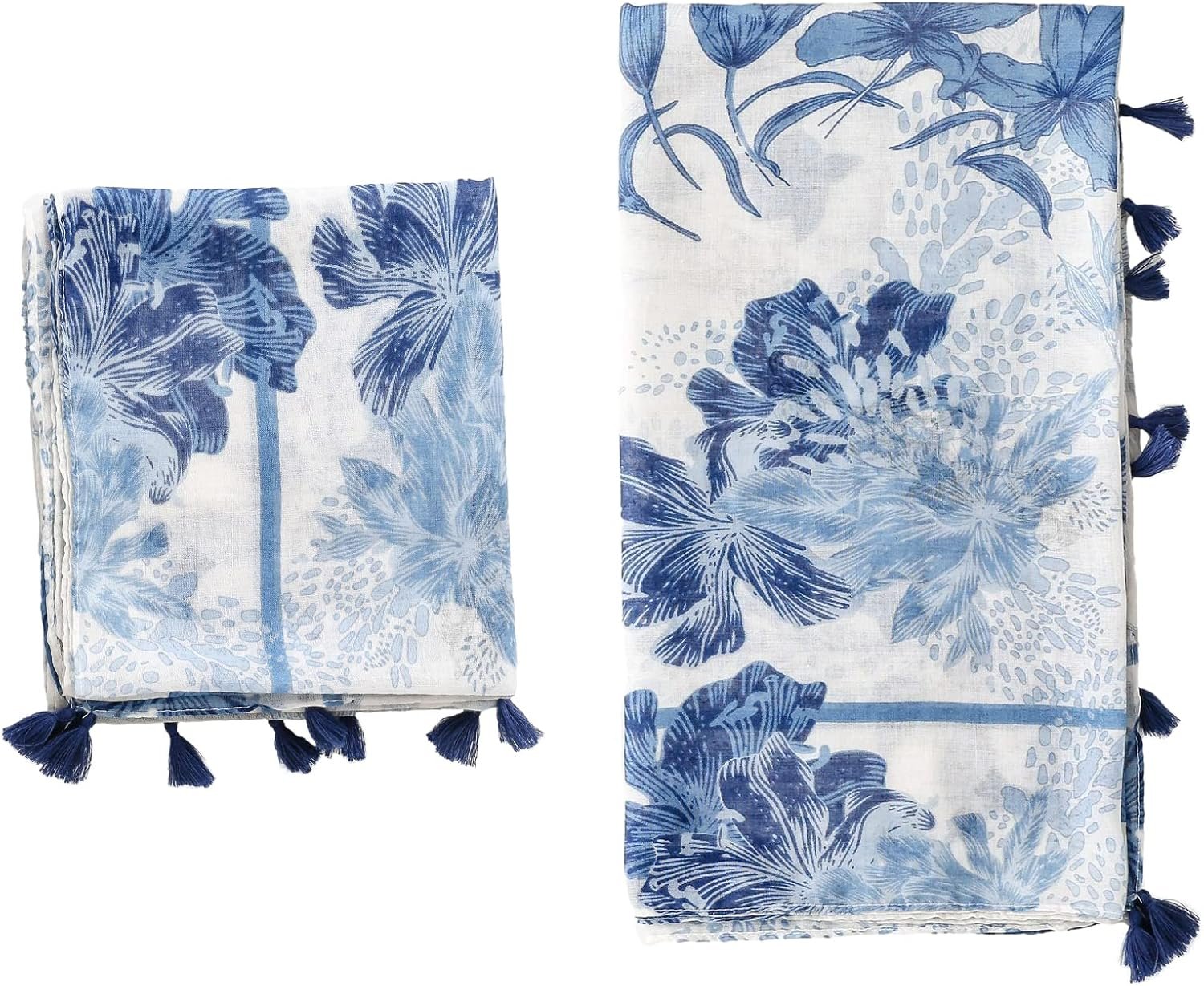 amokk Boho Floral Scarf for Women Lightweight Fashion Hijab Head Scarves with Tassels