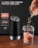 MODERN DESIGN & PRACTICAL CAPACITY – Stylish matte black pepper mill with acrylic window. Suitable for all dinner tables and kitchen countertops. It comes with a utility brush that can easily clean the top of the grinder. The 2.1-inch wide opening container makes refilling effortless, accommodating 6.3 oz of Himalayan salt and 2.8 oz of black peppercorns. Its large capacity means you won’t need to refill it frequently. Measures 8″ tall by 2.5″ wide.
