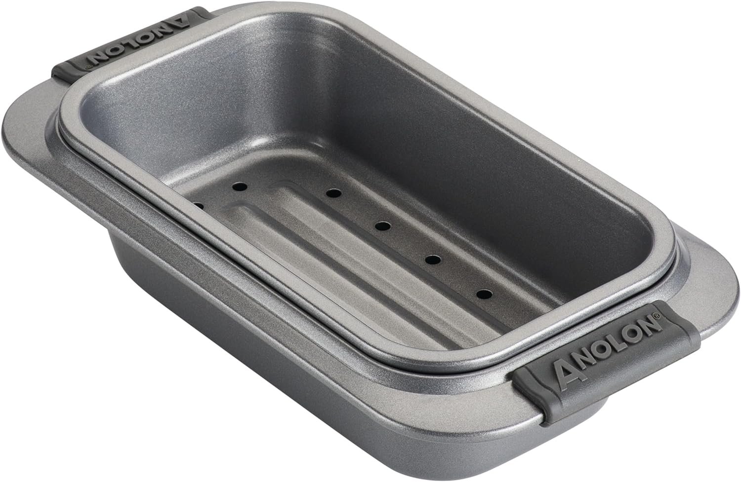 Anolon Advanced Nonstick Bakeware Meatloaf/Loaf Pan Set with Grips and Insert, 2 Piece, Gray