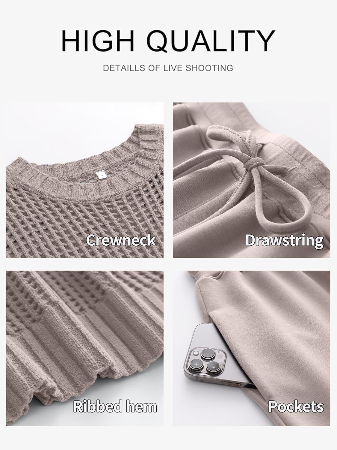Be the first to review “ANRABESS Women Two Piece Outfits Crochet Sheer Knit Sweater Top Wide Leg Pants Lounge Matching Sets Sweatsuit Travel Clothes”