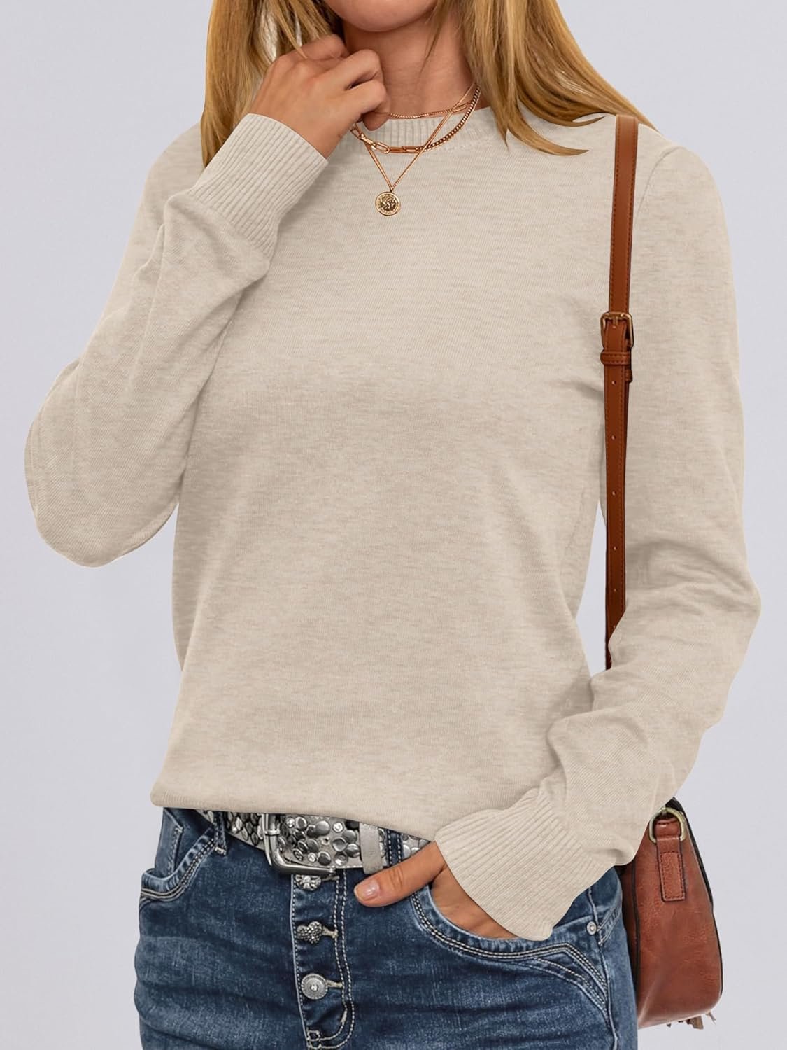 ANRABESS Women’s Long Sleeve Crewneck Classic 2025 Fall Soft Basic Pullover Sweaters Top