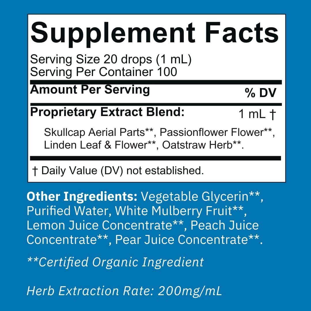 AN ALL NATURAL & HEALTHIER ALTERNATIVE: Relaxation support without the added preservatives and negative after-effects. Sugar-free, organic, gluten-free, and made from only a handful of potent herbs such as Skullcap Aerial Parts, Passionflower Flower, Lineden Leaf & Oatstraw Leaf.