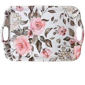 SUPERB DESIGN: The April Box plastic serving trays feature a stunning painted rose and hydrangea print that offers a classy and elegant touch to any breakfast, snack, lunch, or dinner. It has lovely warm colors that blend beautifully with your home décor.