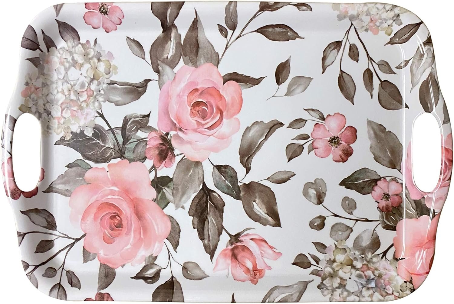SUPERB DESIGN: The April Box plastic serving trays feature a stunning painted rose and hydrangea print that offers a classy and elegant touch to any breakfast, snack, lunch, or dinner. It has lovely warm colors that blend beautifully with your home décor.