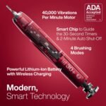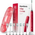 Aquasonic Vibe Series Ultra-Whitening Toothbrush – ADA Accepted Electric Toothbrush – 8 Brush Heads & Travel Case – 40,000 VPM Motor & Wireless Charging – 4 Modes w Smart Timer – Ruby