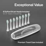 What’s in the Box – 1 Charcoal Metallic Smart Toothbrush, 8 DuPont brush heads, 1 custom travel case, user manual, warranty card.