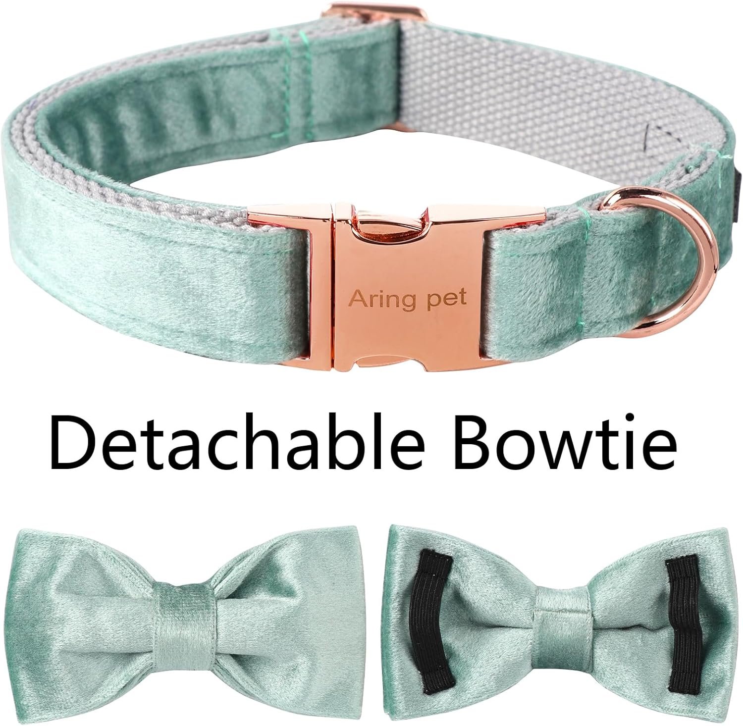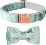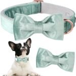 ARING PET Velvet Dog Collars with Bow tie, Dog Bowtie Collar, Adjustable Green Dog Collar,Large.