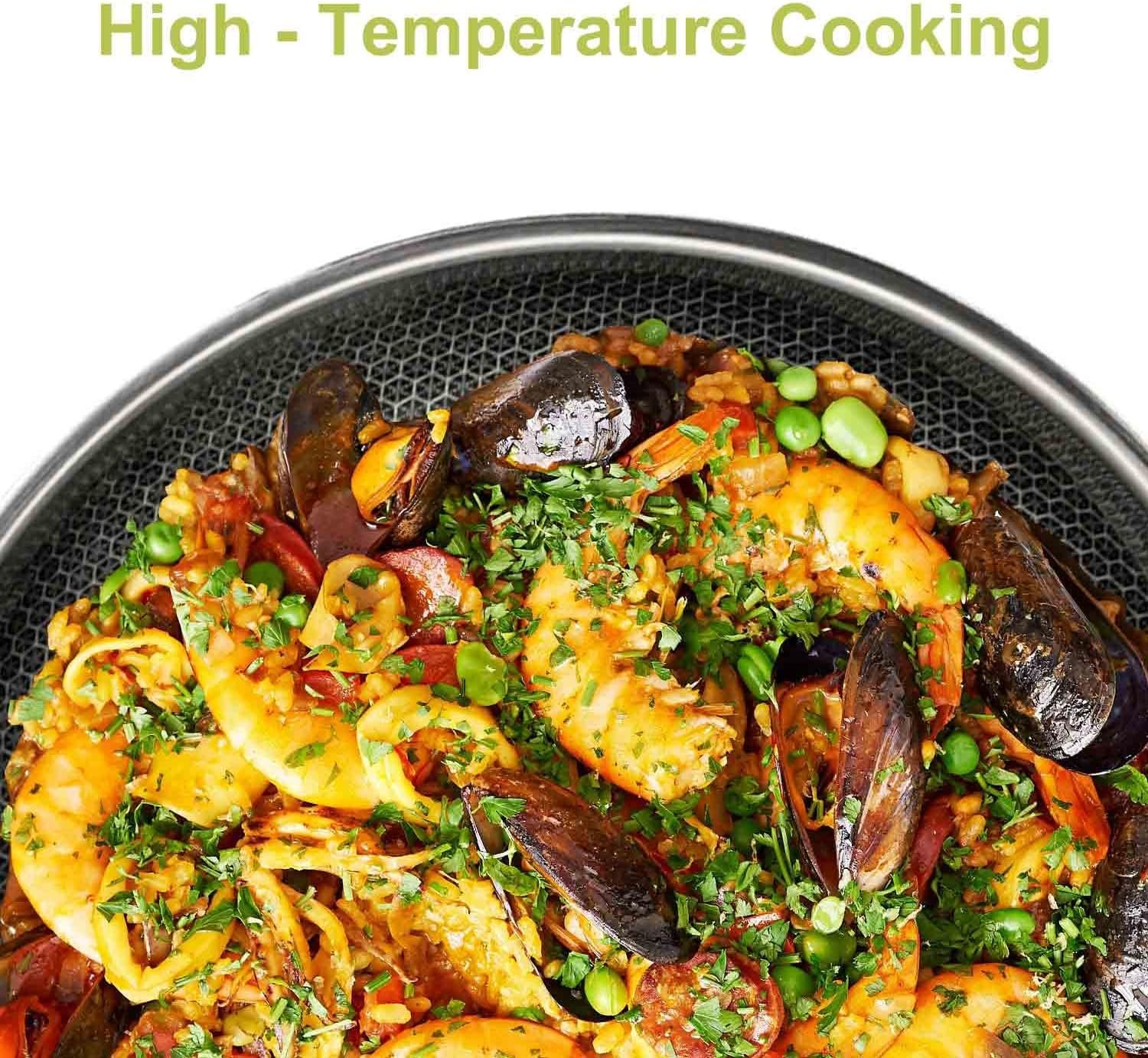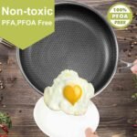 【Even & Quick Heating】: The honeycomb fry pan bottom adopts high-precision micro engraving technology. The honeycomb design allows for even heat distribution, making it perfect for cooking all kinds of dishes, from delicate eggs to hearty steaks, quickly and evenly.