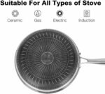 【Suitable For All Stoves】: Heats up quickly and evenly with extended bottom design. Our frying pan compatible with all stovetops, including induction, ceramic stove, gas stove, electric stove.
