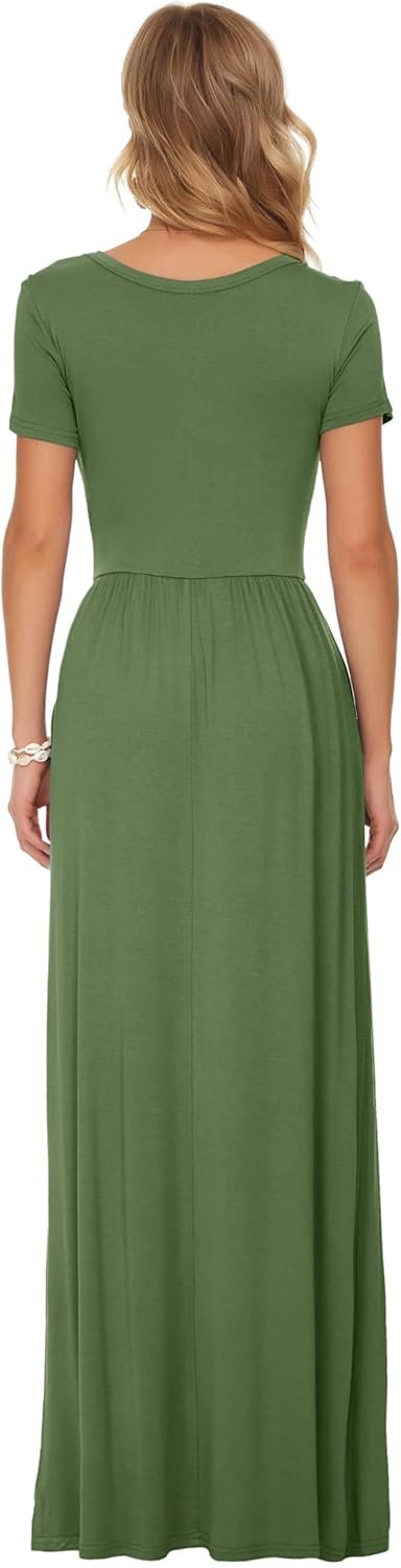 AUSELILY Women’s Short Sleeve Loose Plain Casual Long Maxi Dresses for Women 2025