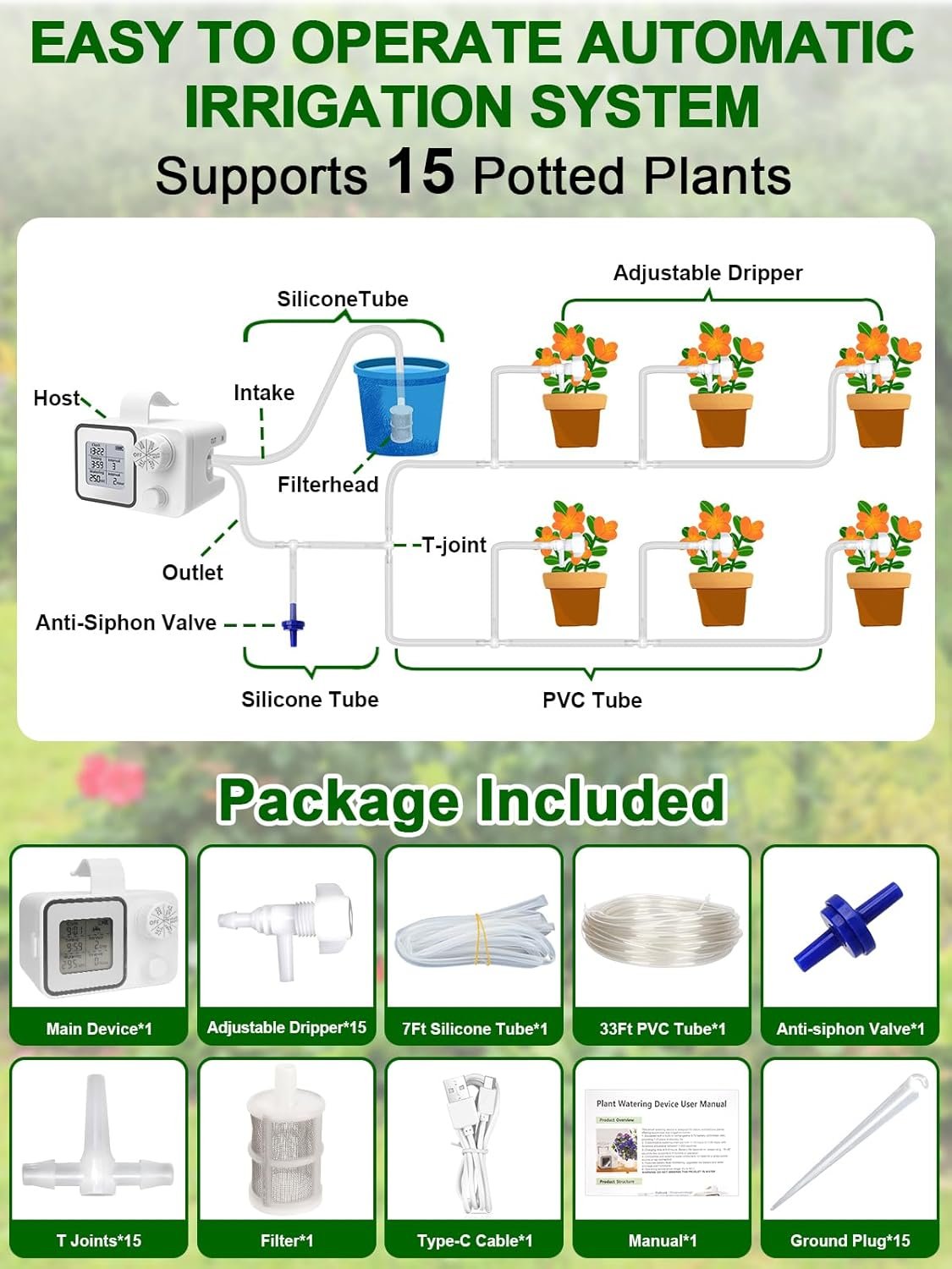 Automatic Plant Waterer Indoor Self Watering System for 15 Potted Plants, Auto Drip Irrigation Kit Programmable Water Timer with Smart Humidity Detection