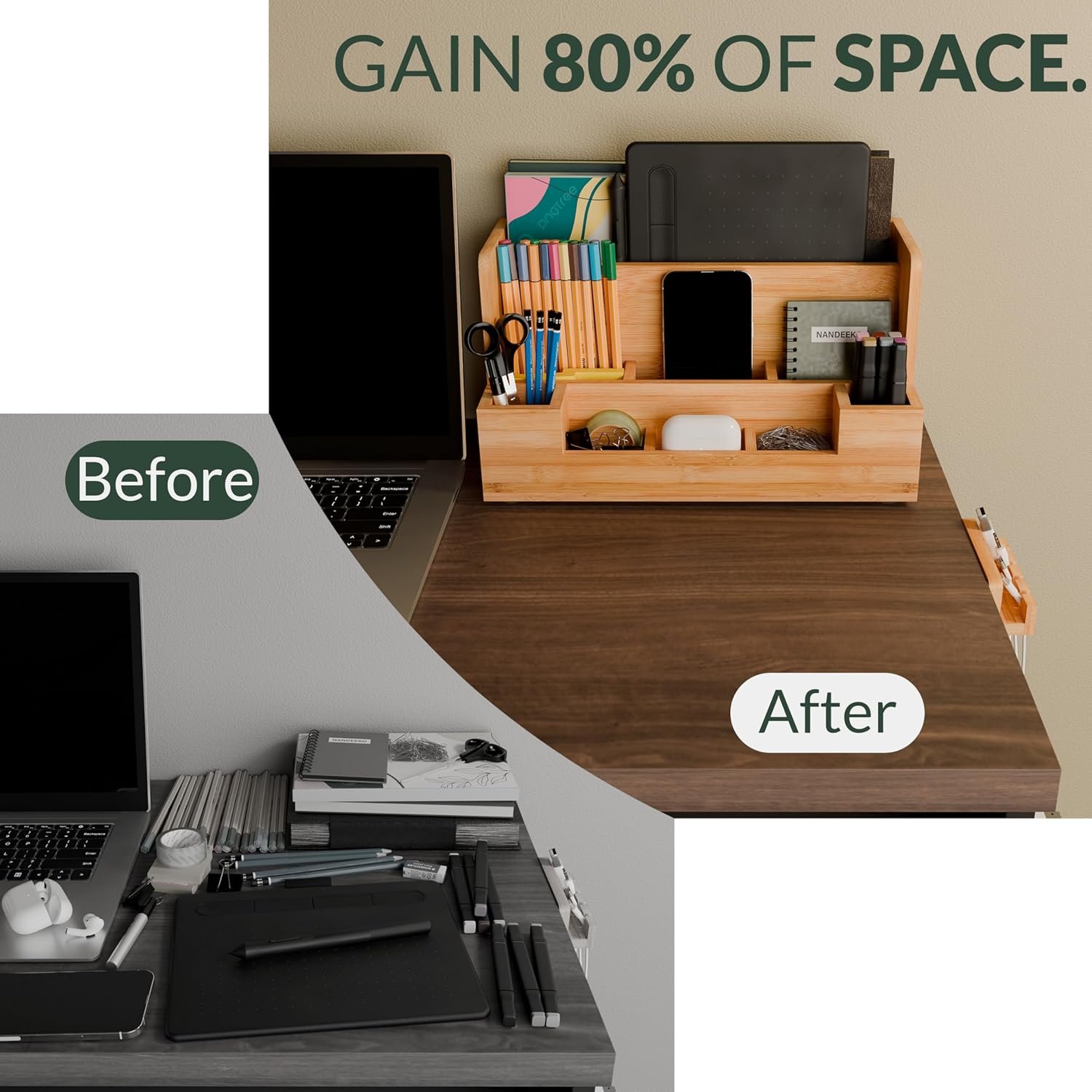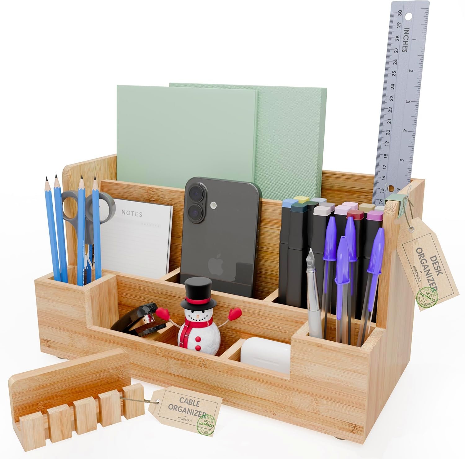 Perfect for organizing: cables, books, pens, and more.Combines functionality with elegance to enhance any workspace.Ideal for desk organizers and accessories, desk storage organizers, and bamboo desk accessories.
