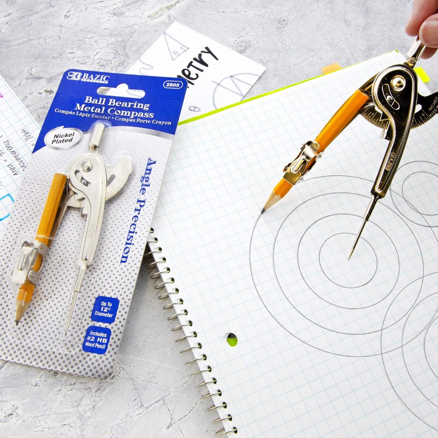 ⭐ PERFECT ANGLES. Perfect for precise drawings. Trace and draw the perfect angle, circumferences, graphing, and design with our easy-to-use compasses.