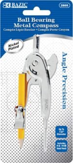 BAZIC Geometry Math Compass Set w/Scale-Arm, Nickel Plated Metal Ball & HB Wood Pencil, Inch Centimeter, Mathematical Drafting Drawing Tool, 144-Packs