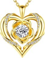 Beam & Bask Rose Flower Heart Moissanite Necklaces for Wife, S925 Silver Pendant for Women, 18K Gold Plated Jewelry for Her Girlfriend Mom for Anniversary Birthday