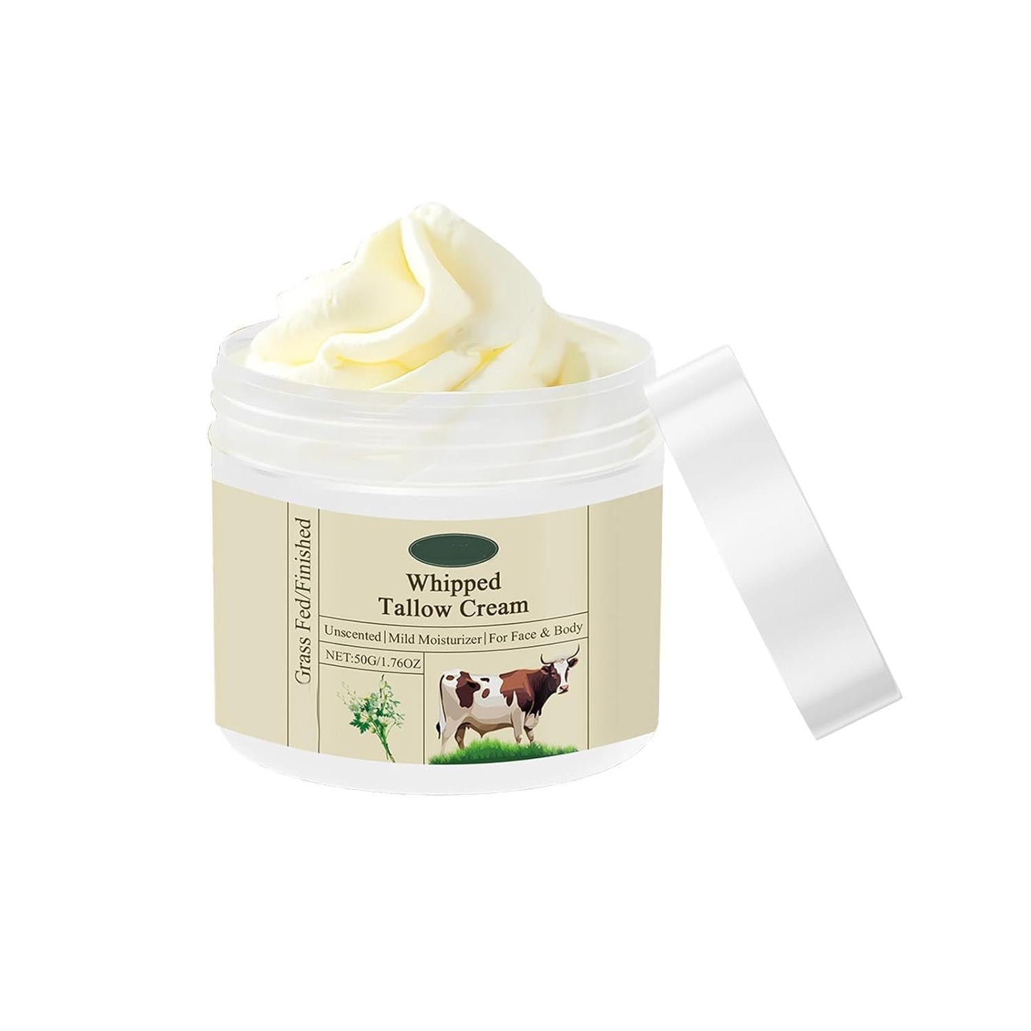 Beef Tallow for Skin, Beef Tallow Balm,Tallow Face Moisturizer, 100% Unscented Organic Grass Fed Finished Whipped Tallow Face Cream Moisturizer Balm for Sensitive Redness Skin Care(1PCS)