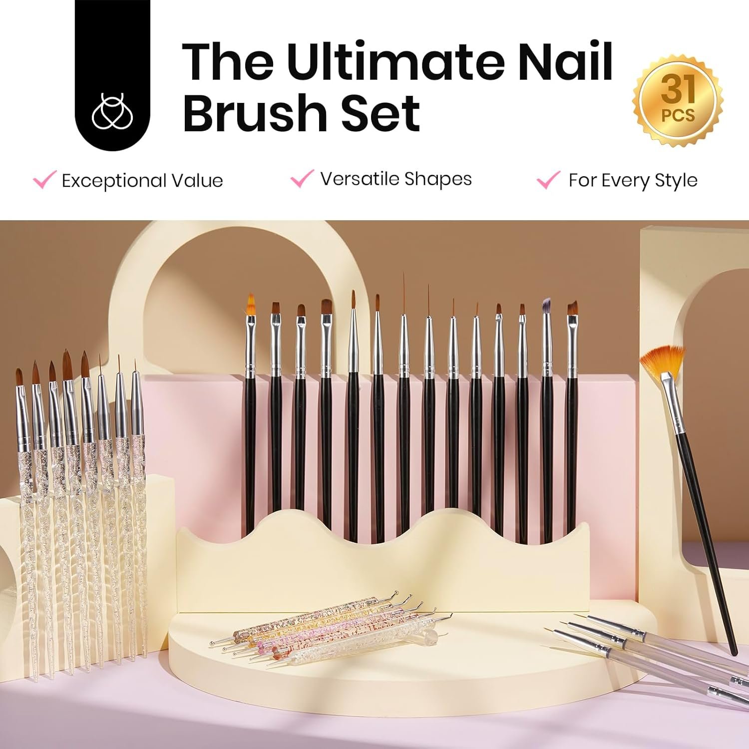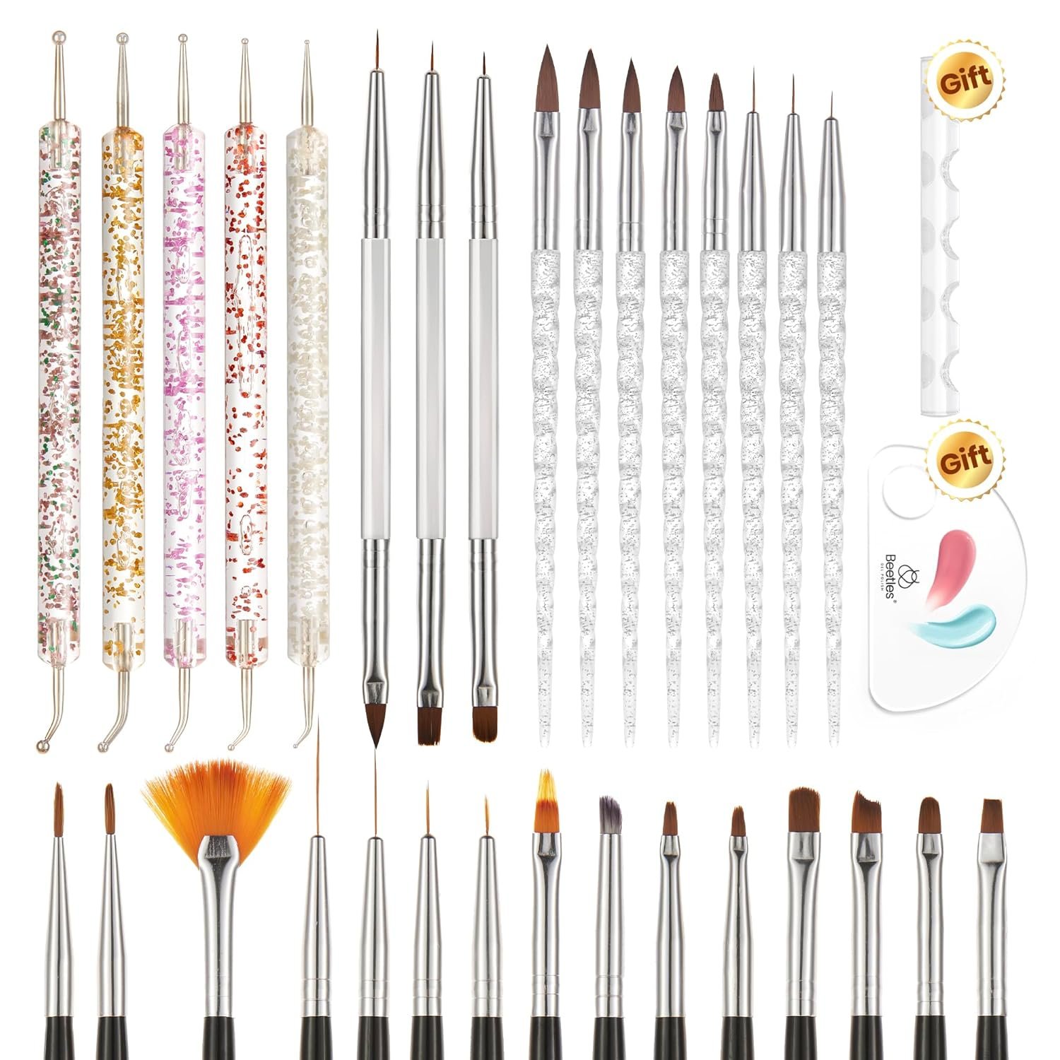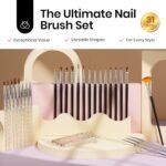 Beetles 31pcs Nail Art Brushes, Nail Dotting Tools, Nail Drawing Pens, Nail Dust Brush, Striping Nail Art Liner Brushes, Nail Art Pens with Nail Brush Holder All in One for Starter Nail Art Design