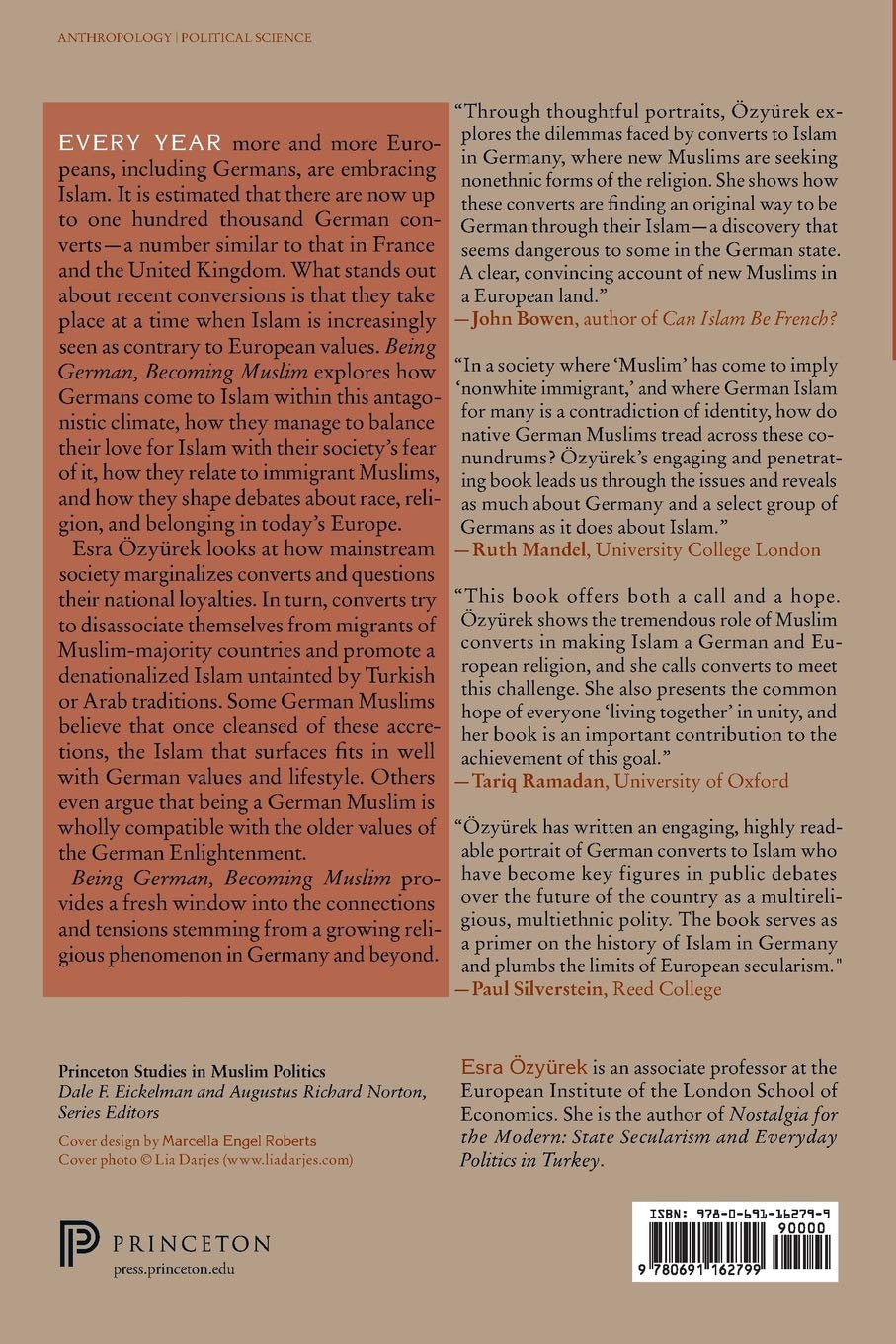 Esra Özyürek looks at how mainstream society marginalizes converts and questions their national loyalties. In turn, converts try to disassociate themselves from migrants of Muslim-majority countries and promote a denationalized Islam untainted by Turkish or Arab traditions. Some German Muslims believe that once cleansed of these accretions, the Islam that surfaces fits in well with German values and lifestyle. Others even argue that being a German Muslim is wholly compatible with the older values of the German Enlightenment.