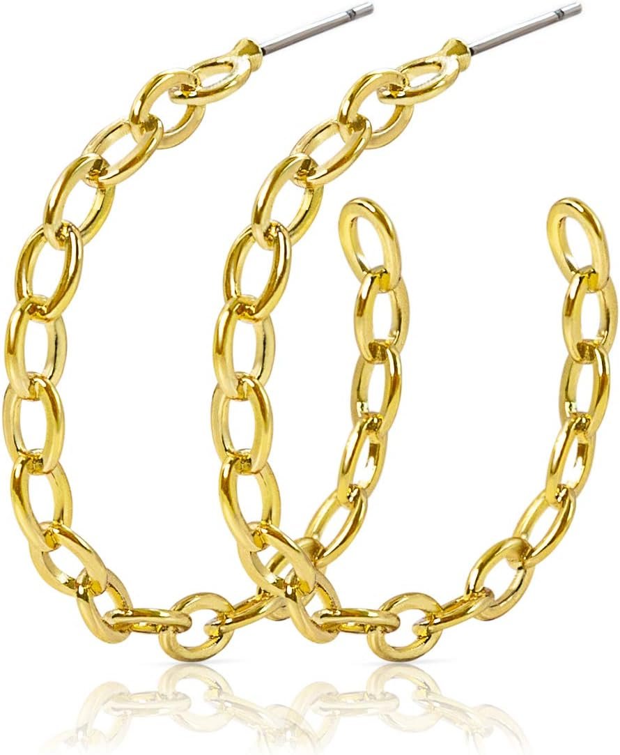 Benevolence LA Chain Hoop Earrings for Women, Chunky Gold Plated Earrings, Large Hoops for Women’s Accessories | Mothers Day Gifts