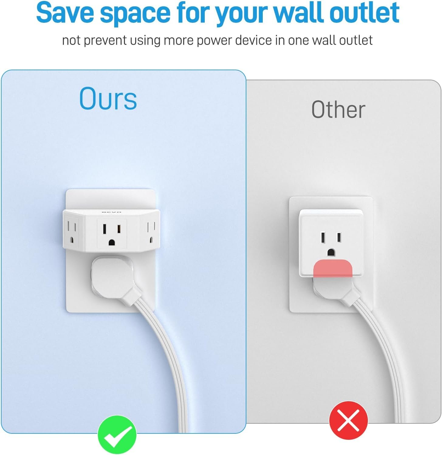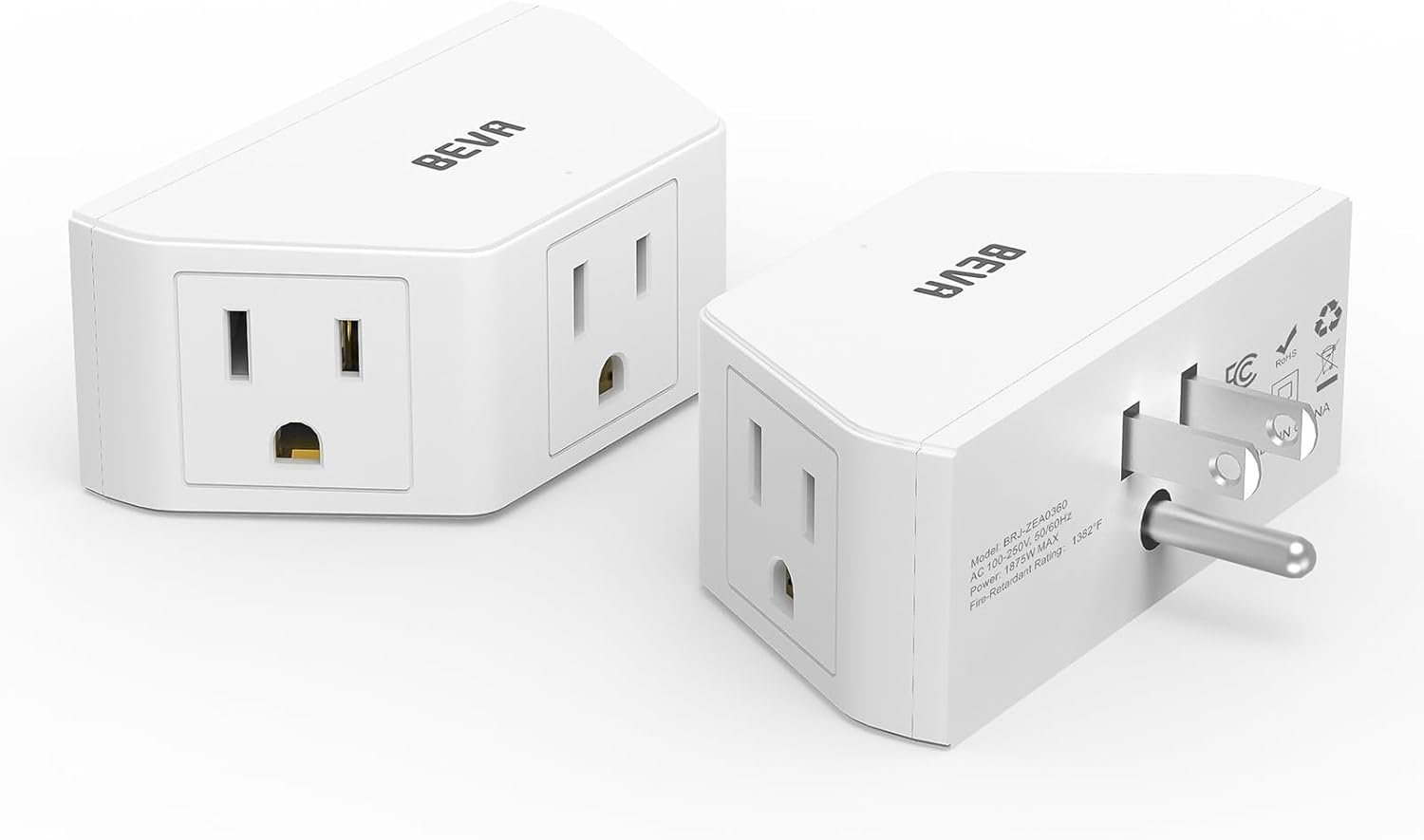 BEVA 2 Pack Small Electric Outlet Adapter, Multi Plug Wall Outlet Extender, 3 Prong Adapter 3 AC Plug Extender for Travel Cruise Ship Dorm Room Essentials