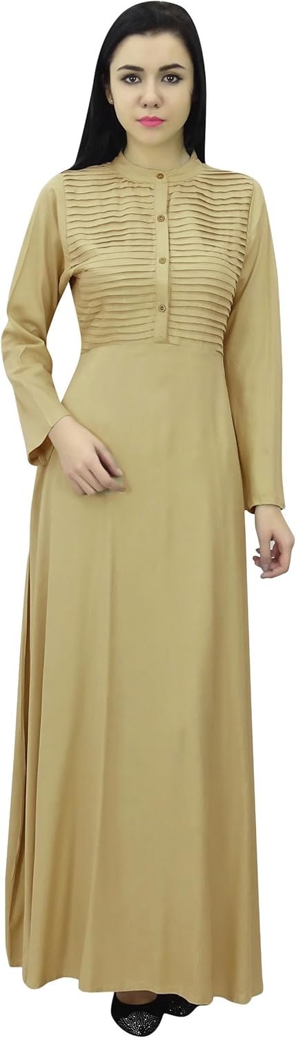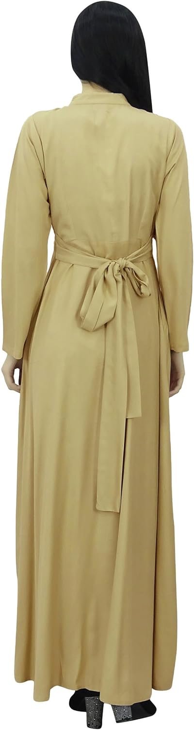 Bimba’s latest collection of dresses includes this adorable abaya style Jilbab Maxi dress in rayon fabric. This long sleeve dress has solid pattern and inclued front button down and tie knot waist belt, also includes pockets.