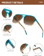 BIRCEN Polarized Trendy Sunglasses for Women – Men UV Protection Acetate Square Aviator Shades