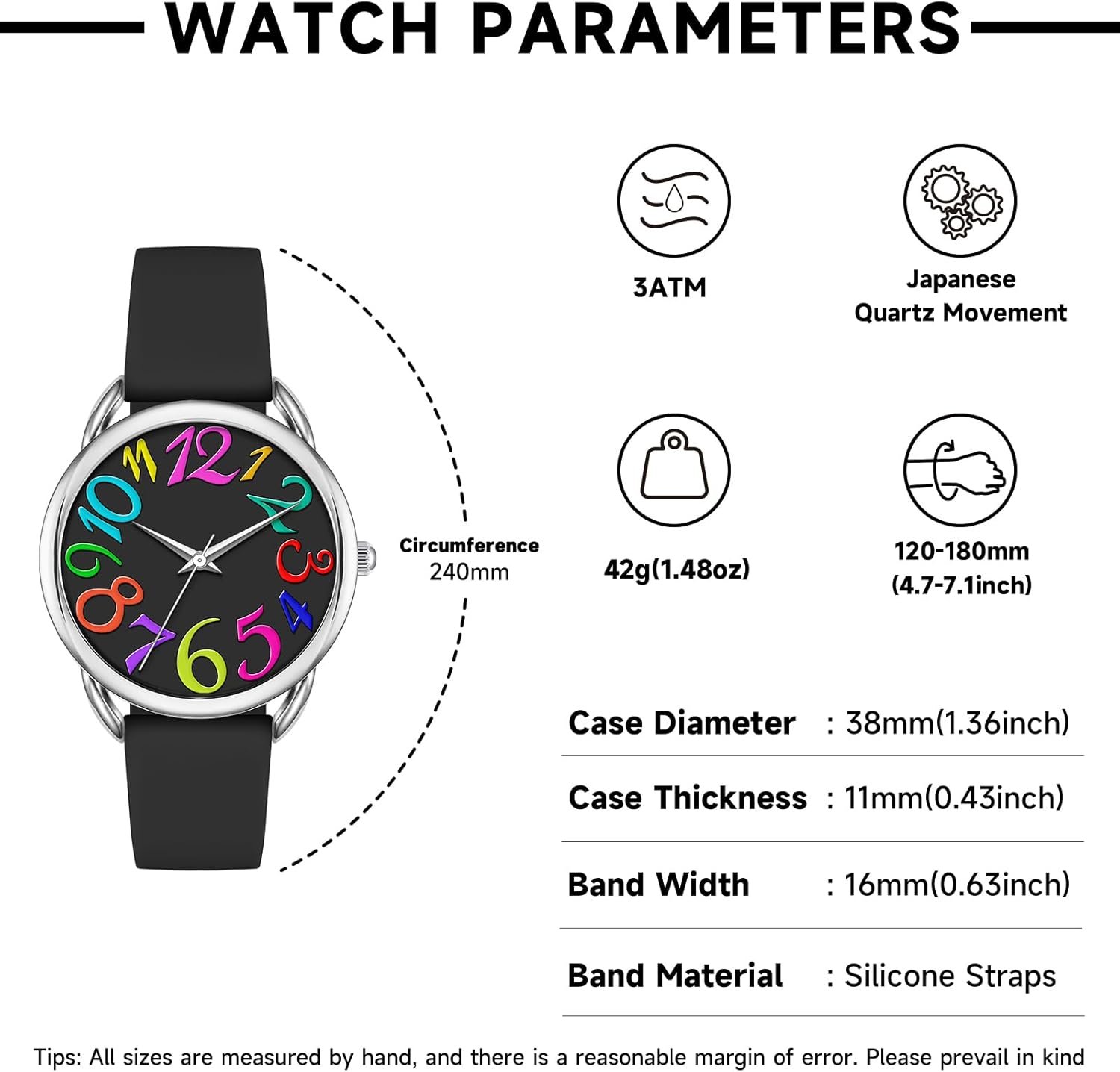 Customers find the watch has a colorful face with bright numbers. They appreciate the large face that is easy to read. The numbers are large enough for those with poor vision. The watch is comfortable and easy to wear, making it enjoyable to wear. Many customers consider it a good value for the price, with good quality and water resistance.