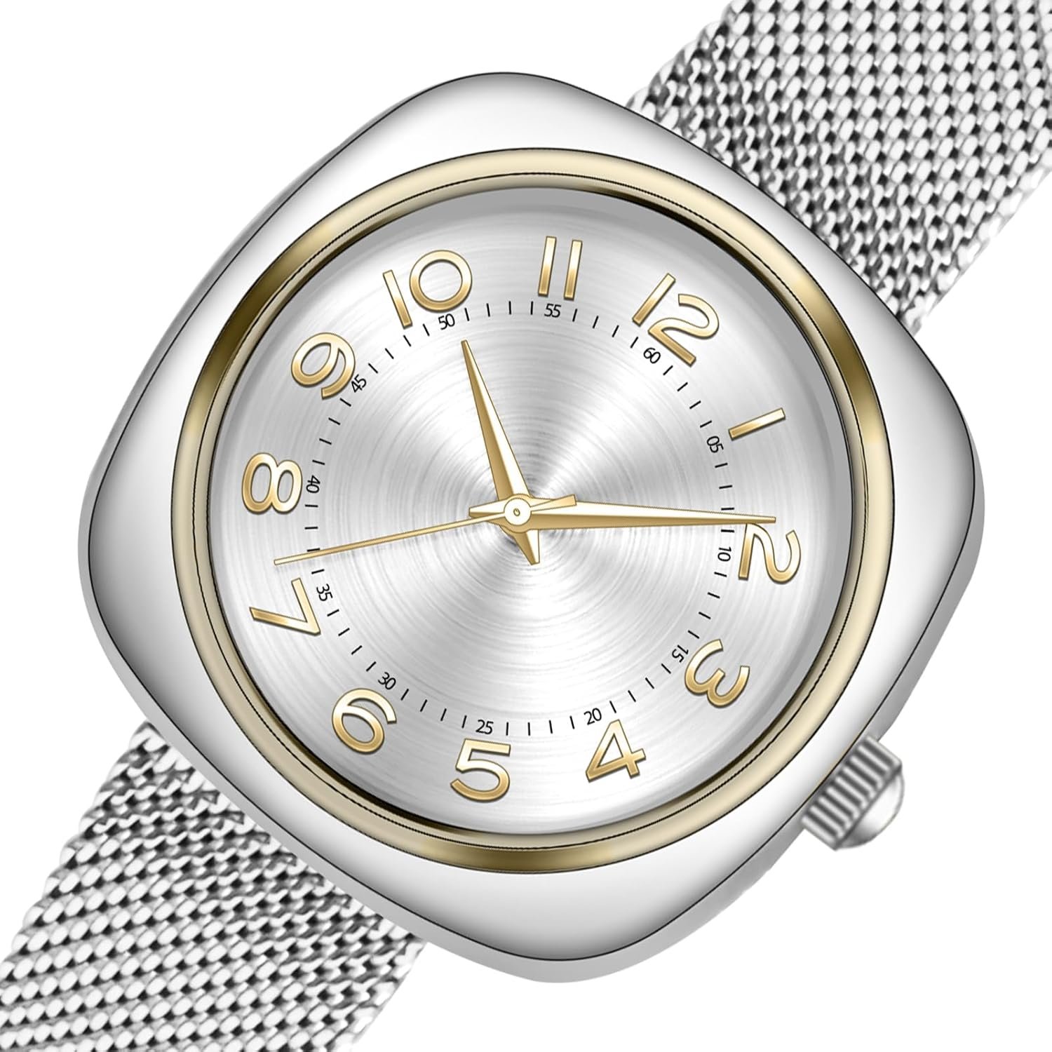 Bisley Women Watch Square Watch Easy Reader Stainless Steel Mesh Watch for Small Wrist