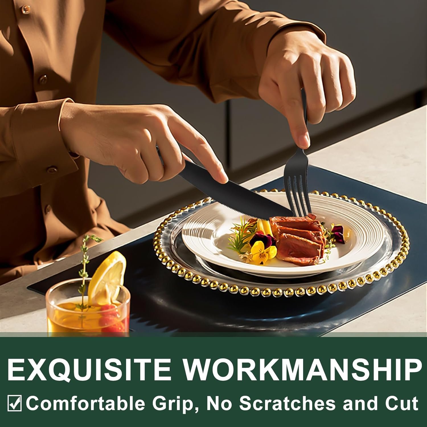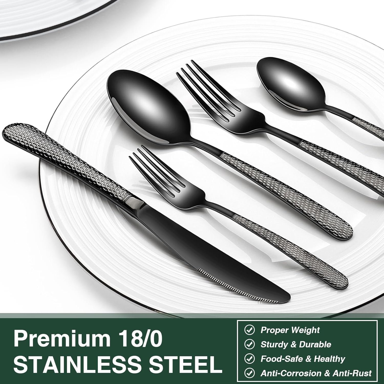 COMFORTABLE DESIGN: This flatware set has a classic silhouette with clean lines and polish-finish surface in all black, a good choice to go with your existing tableware. The smooth edge of the handle is pleasure to hold, appropriate weight and perfect balance are added to ensure maximum comfort during use.