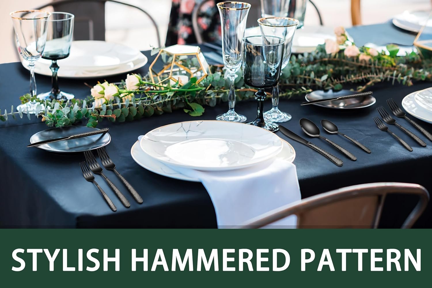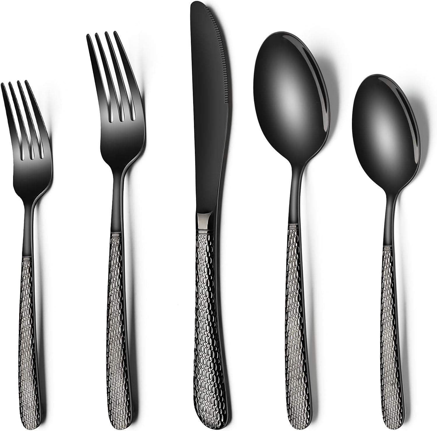 Black Hammered Silverware Set, 20-Piece Stainless Steel Heavy Duty Flatware Set for 4, Food-Grade Tableware Cutlery Set, Utensil Sets for Home Restaurant, Mirror Finish
