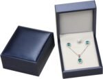 Blue Color Necklace Earring Set Gift Box Luxury Soft Touch PU Leather Material Necklace Pendant Chain Jewelry Storage Box Size 2.87″(W)*3.35〞(D)*1.38〞(H)