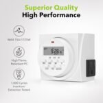 ✓ SAFE & RELIABLE: This digital outlet timer is UL listed and rigorously controlled for quality and safety. The handy red LED indicator will turn on when the timer’s outlets are on. Rating: 115V, 60 Hz, 15A/1725W
