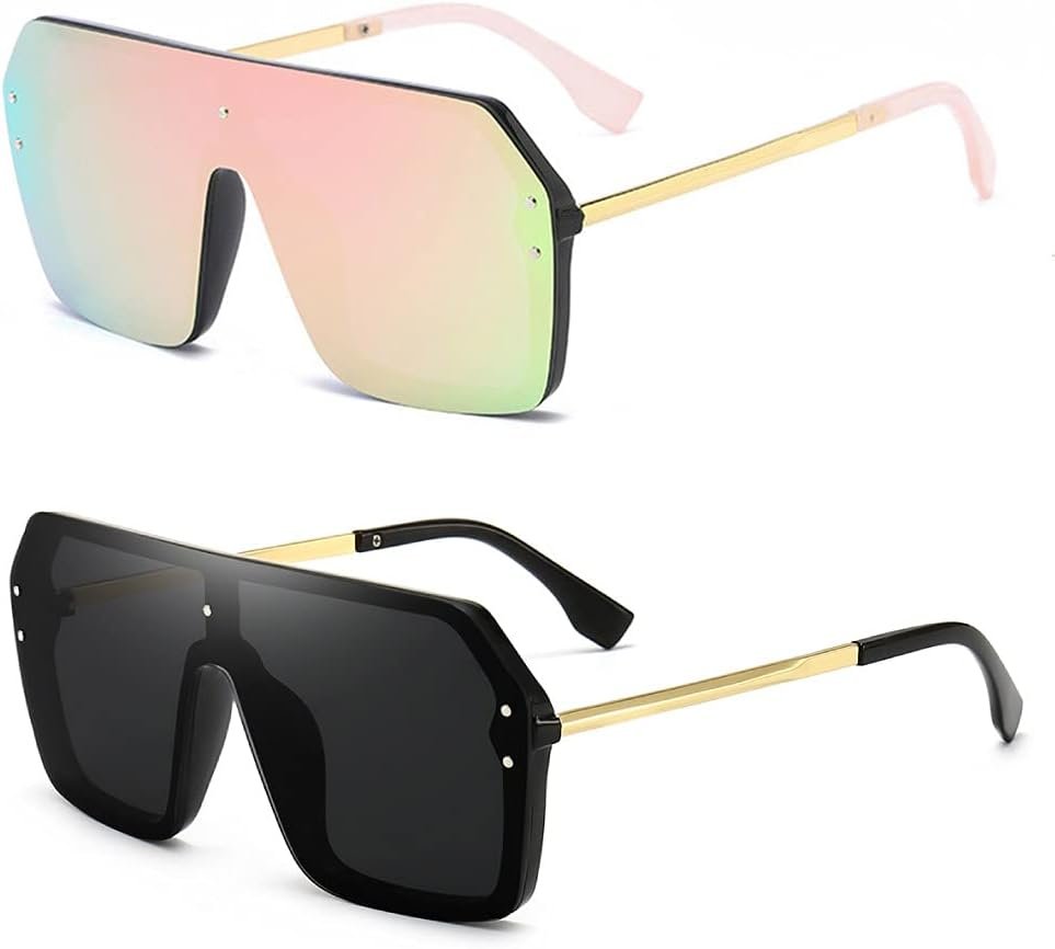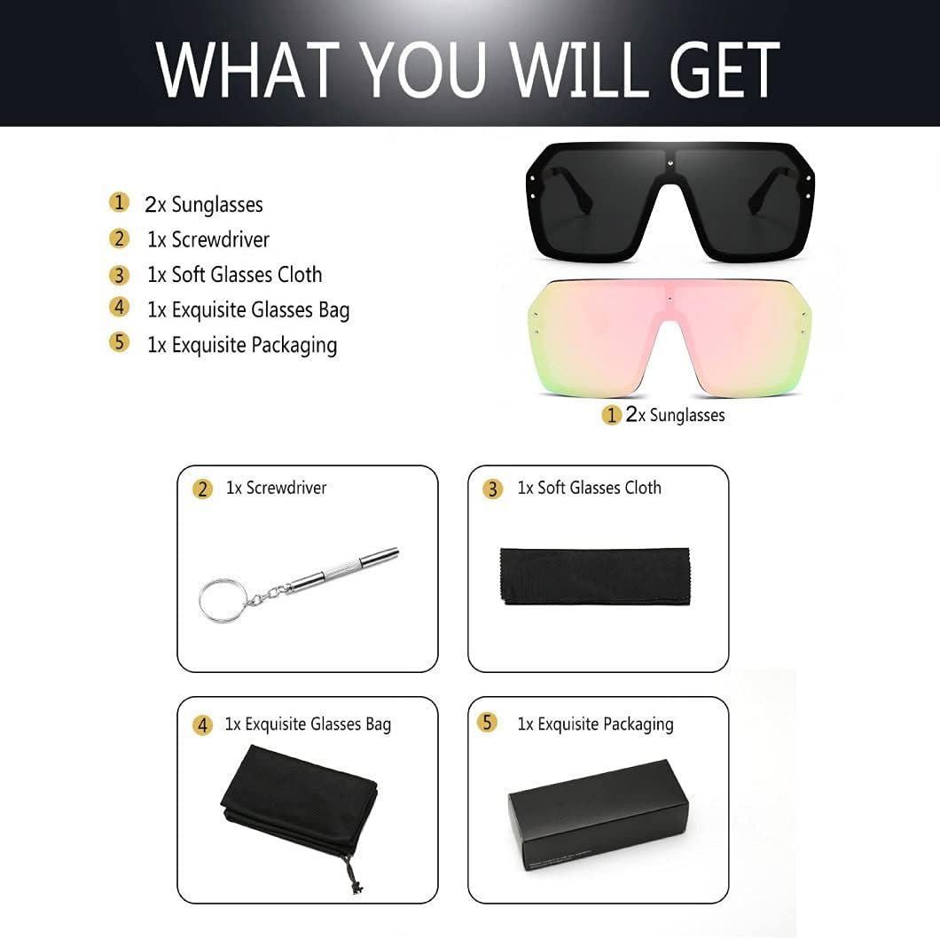 BOJOD Oversized Sunglasses for Women Trendy One Piece Flat Top Rimless Sunglasses Siamese Big Large Shades