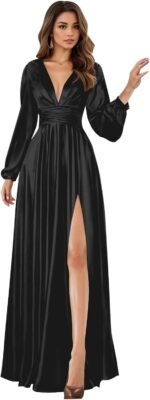 Be the first to review “BOLENSYE Satin Bridesmaid Dresses Long Sleeve A Line V Neck Ruched Slit Formal Evening Party Gown with Pockets” Cancel reply