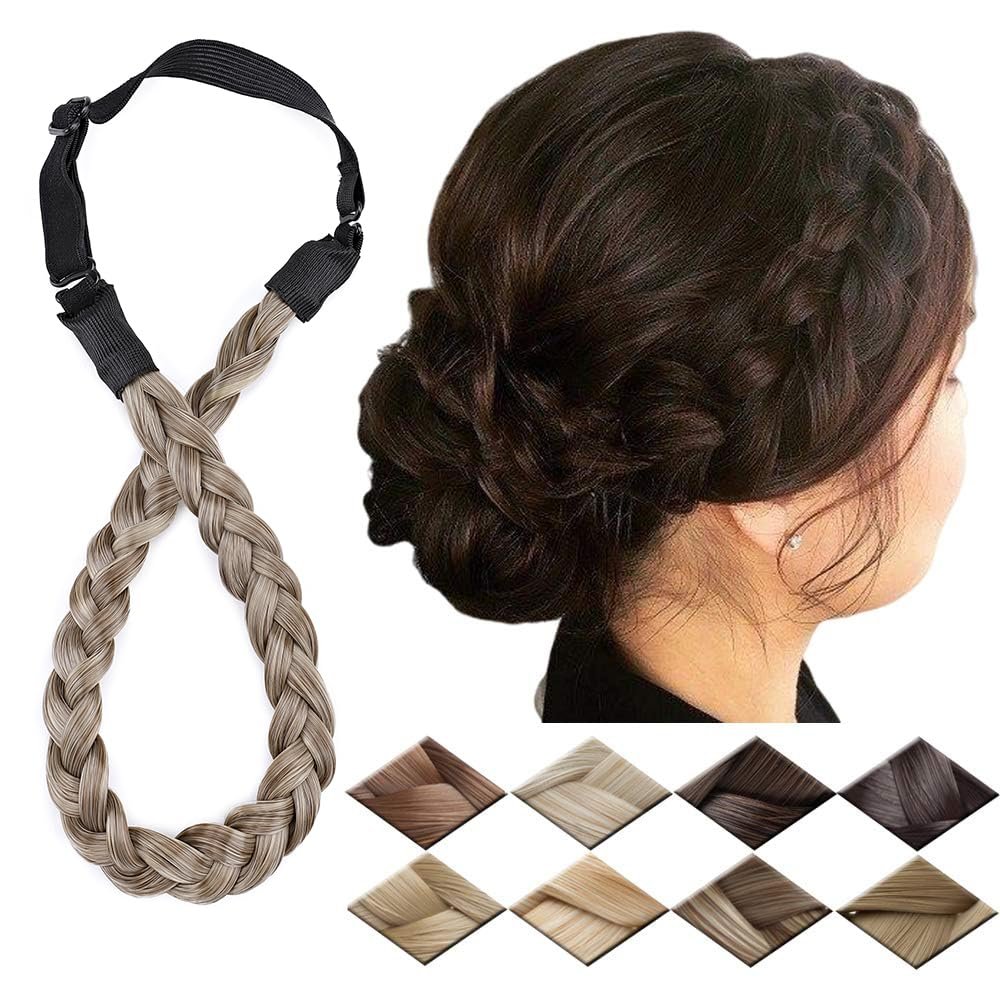 Braided Headband Wide Elastic Stretch Synthetic Hairpiece For Girls And Women (Small-three strands, 9/24)