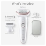 INCLUDES: SE9 Epilator, Trimmer Comb, Shaver Head, Cleaning Brush and Pouch