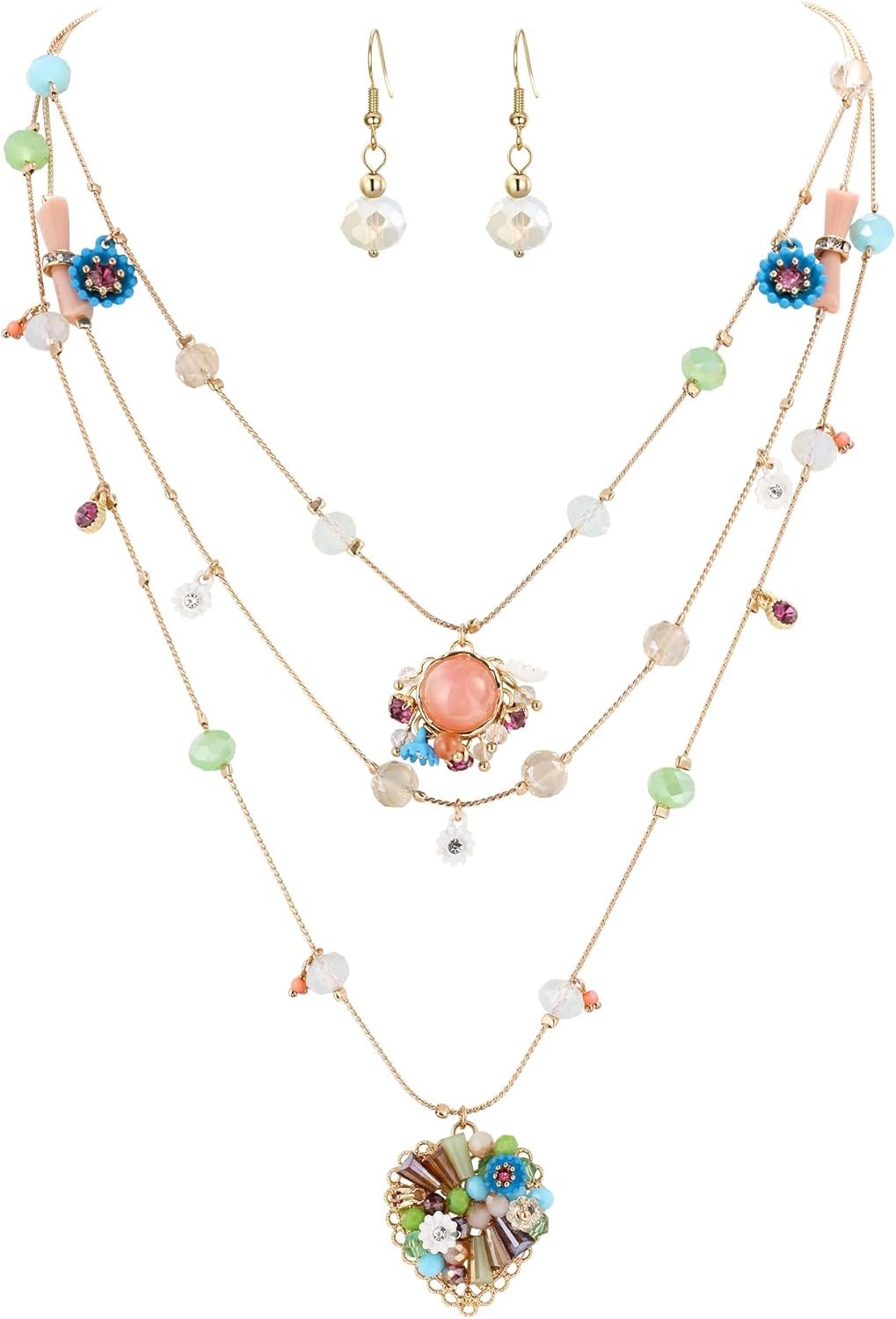 BriLove Handmade Strand Necklace for Women,Bohemian Boho Colorful Beaded Layered Heart Collar Statement Pendant Necklaces for Summer Vacation Holiday Prom Jewelry
