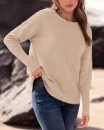 Casual Long Sleeve Sweater For WomenFashion Winter Sweater For 2025Back To School Sweater For GirlsSolid Color Ribbed Knit SweaterBasics Womens ClothingLong Sleeve Sweater 2025Oversized Sweaters For WomenKnit Tops For Women Fall