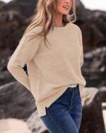 Comfortable And Thick Sweaters Are The Perfect Choice For The Upcoming Autumn And Winter Seasons, Making You Both Warm And Fashionable.Keeping Up With The Trend Of Autumn Women’s Sweaters, It Is Also a Fashionable Winter Sweater For Women.The Design Of The Round Neck Adds An Timeless Sense Of Timelessness.Embrace Trendy And Cute Autumn Tops And Effortlessly Enhance Your Attire.The Batwing Sleeves With Fitted Cuffs Add a Touch Of Elegance.The Side Slits And Unique Ribbed Hem At The Front And Back Elevate The Overall Look.