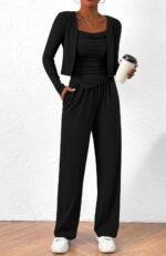 Fall Workout Sets For Women CasualWomens Matching Lounge Set 3 PieceSexy Outfits For Women Going OutCami Vest Wide Leg Pants And Cardigan Sweatsuits