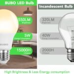 Energy Efficient & Cost Saving:Save up to 85% on energy consumption with BUBO A19 LED 5W bulbs, equivalent to 40W incandescent bulbs. With an estimated annual energy cost of just $0.6 (based on 3 hours/day, 11/kWh), they help reduce your electricity bill significantly.