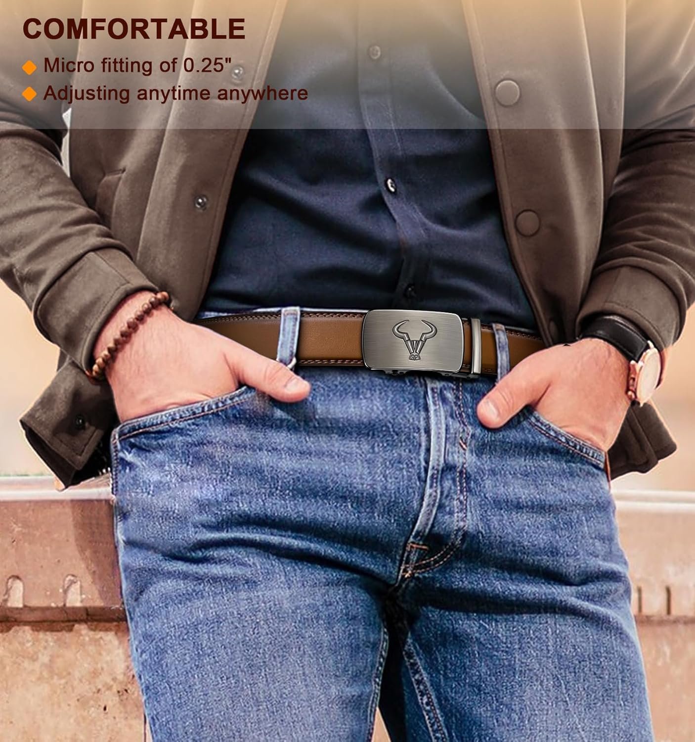 BULLIANT Men belt 2Pack,Leather Ratchet Belt for Gift Men Dress Casual Jeans 1 3/8″,Cut for Fit