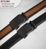 Customers praise the belt’s quality, noting it’s made of good leather that stands the test of time and is sturdy enough for both work and casual wear. The belt features a ratchet system that works flawlessly, is easy to size and adjust, and holds pants securely in place. Customers find it well worth the price and appreciate its ease of use, particularly how quickly it can be put on or taken off.