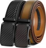 BULLIANT Men’s Ratchet Belt 2 Pack-Click Leather Belt Adjustable for Men Gift 1 3/8-Cut for Perfect Fit