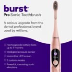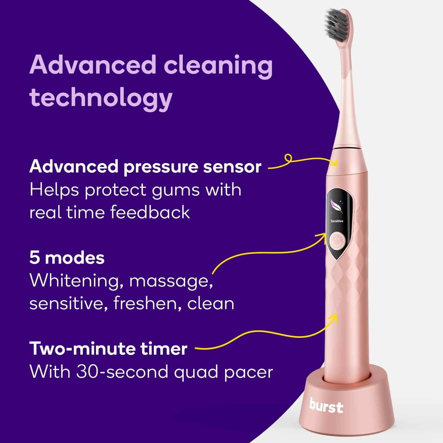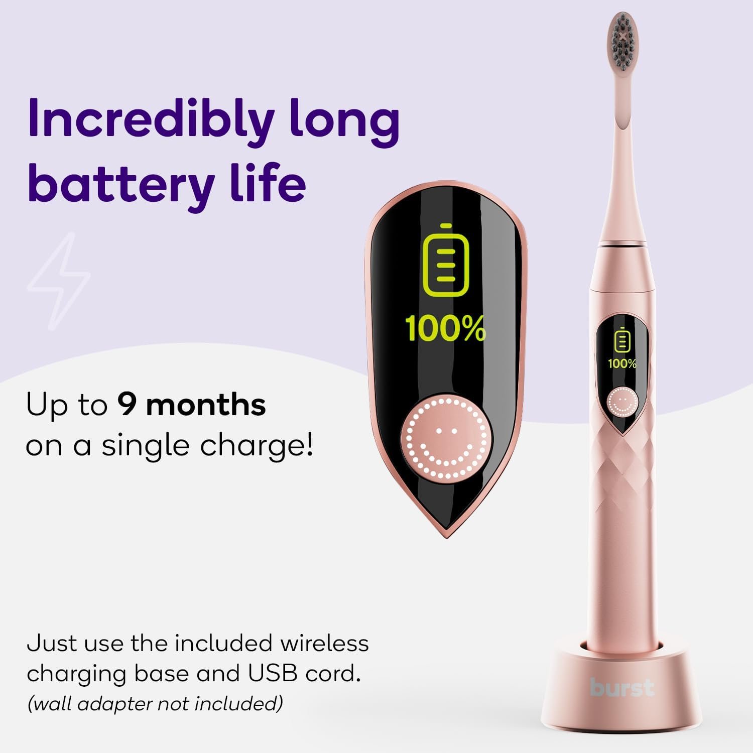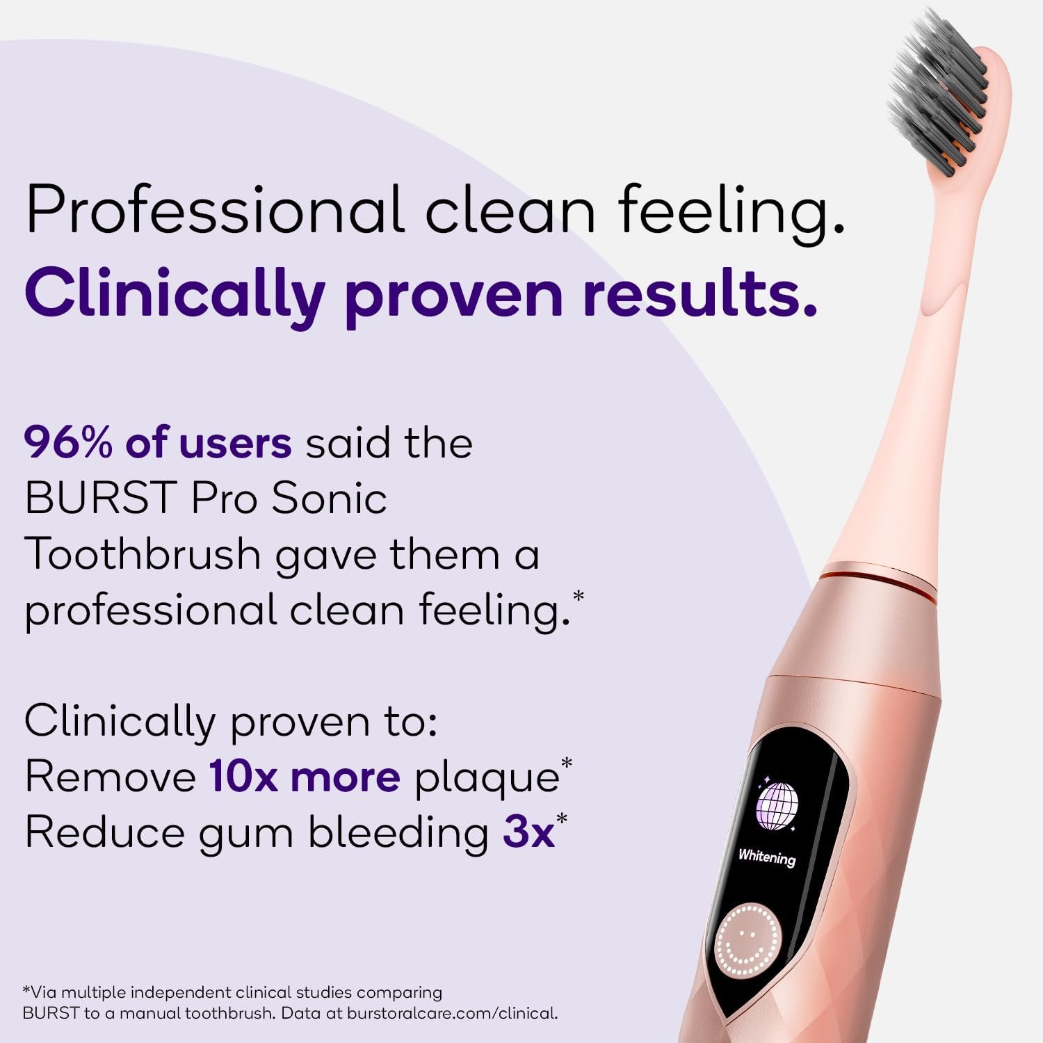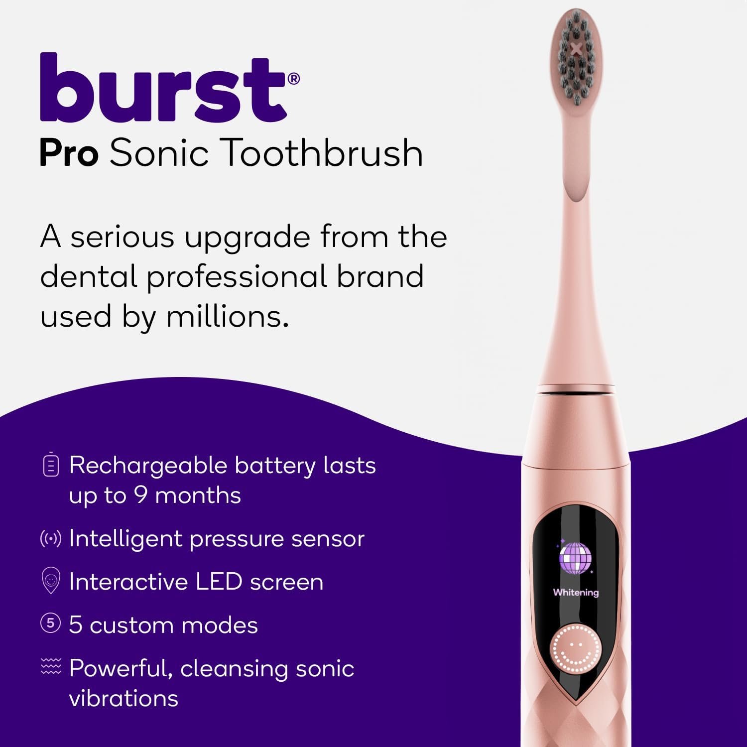Burst Pro Sonic Advanced Electric Toothbrush for Adults (Rose Gold) | Soft Bristles | 33,000 Vibrations | Long-Lasting Battery and Multiple Brushing Modes