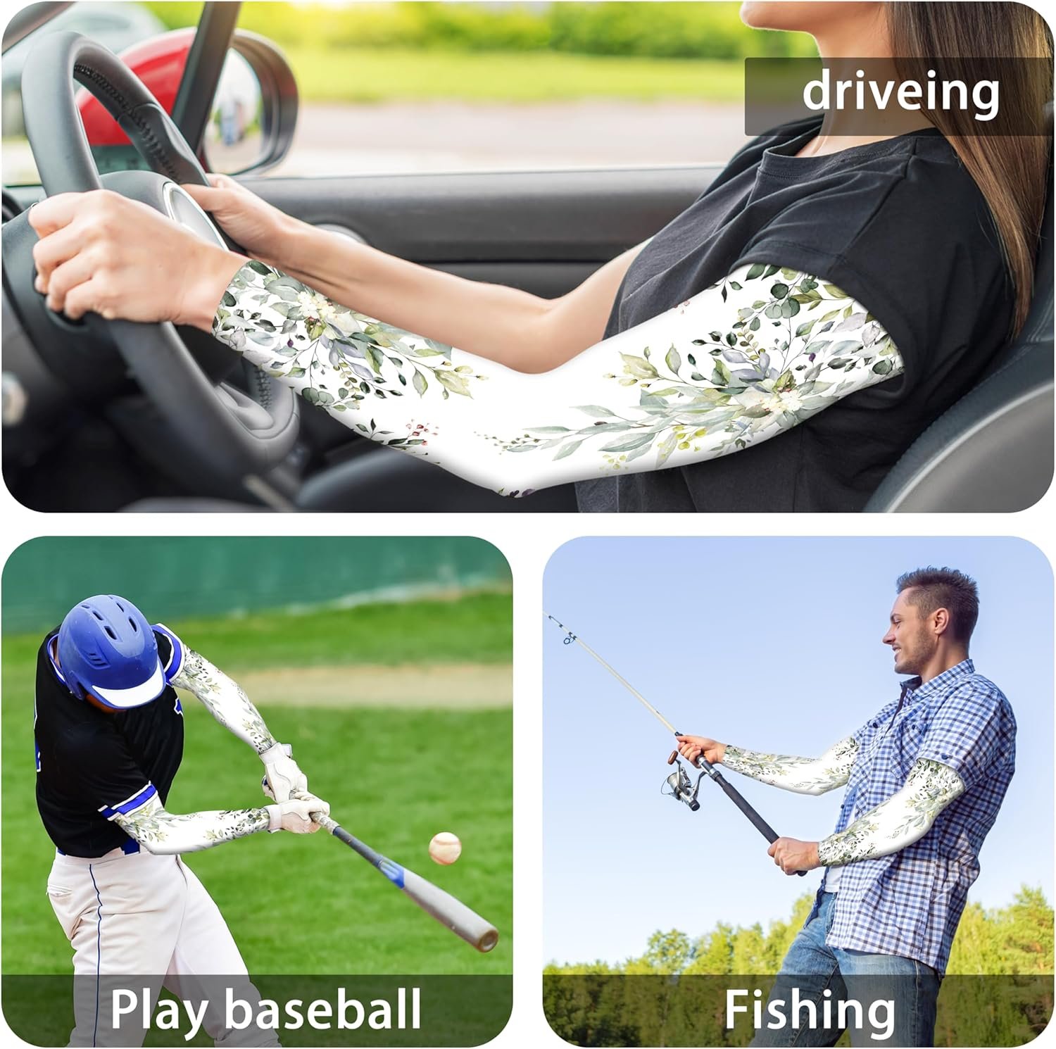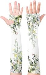 Customers find the arm sleeves comfortable and providing good protection for their arms. They stay up with a combination of tightness and a rubber-like material around the top. The sleeves protect from minor scratches and keep their arms from getting scratched in weeds. The design is pretty and the pattern is as advertised. Customers are satisfied with the functionality, durability, and lightweight material.