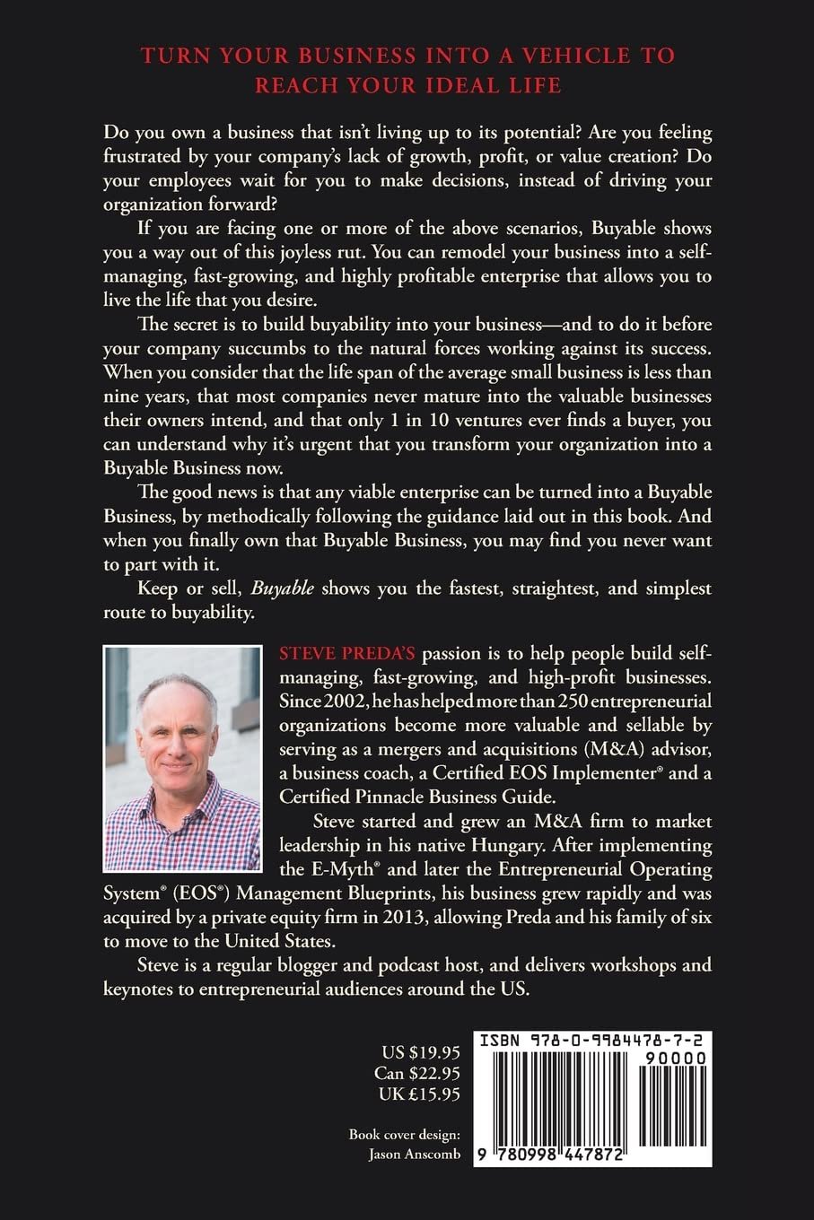 In his top-rated book, Buyable, bestselling author, successful entrepreneur with an exit, and sought-after consultant Steve Preda will show you how to turn your business into a valuable asset. You’ll create a Buyable business even if you have no plan to sell it. Why? Because your business will work for you with very little effort, supervision, and stress from you.