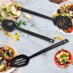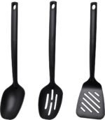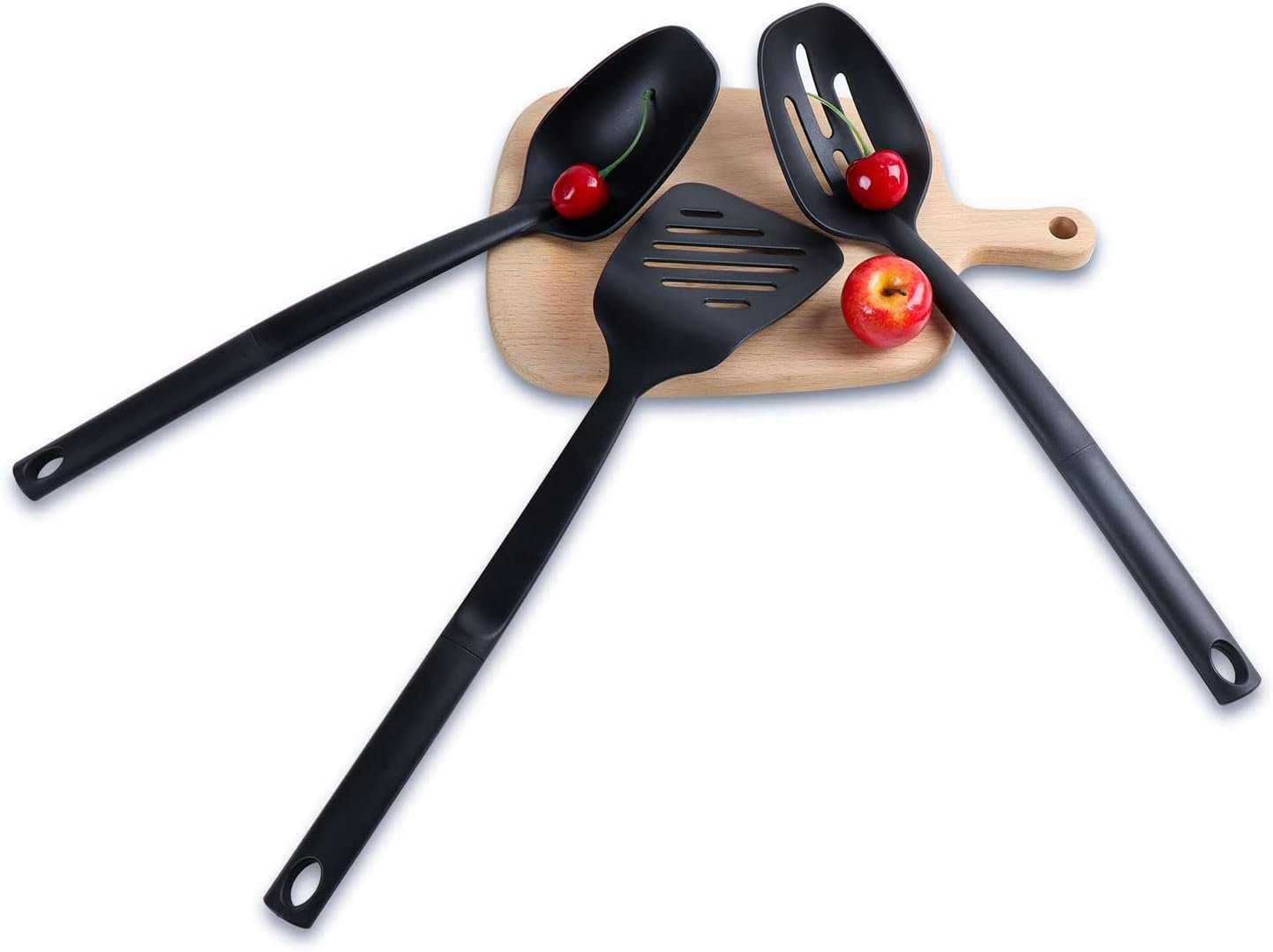 BYVOV 3pc Anti-Scratch Nylon Kitchen Utensils Set – Slotted Spatula, Cooking Spoons & Slotted Spoon -Black