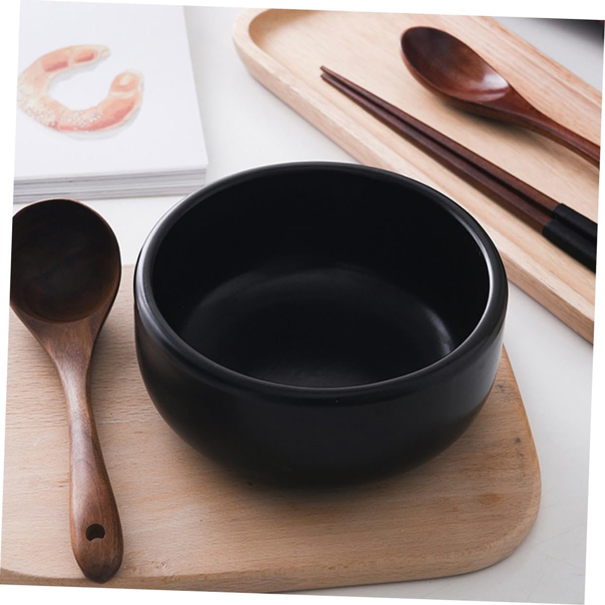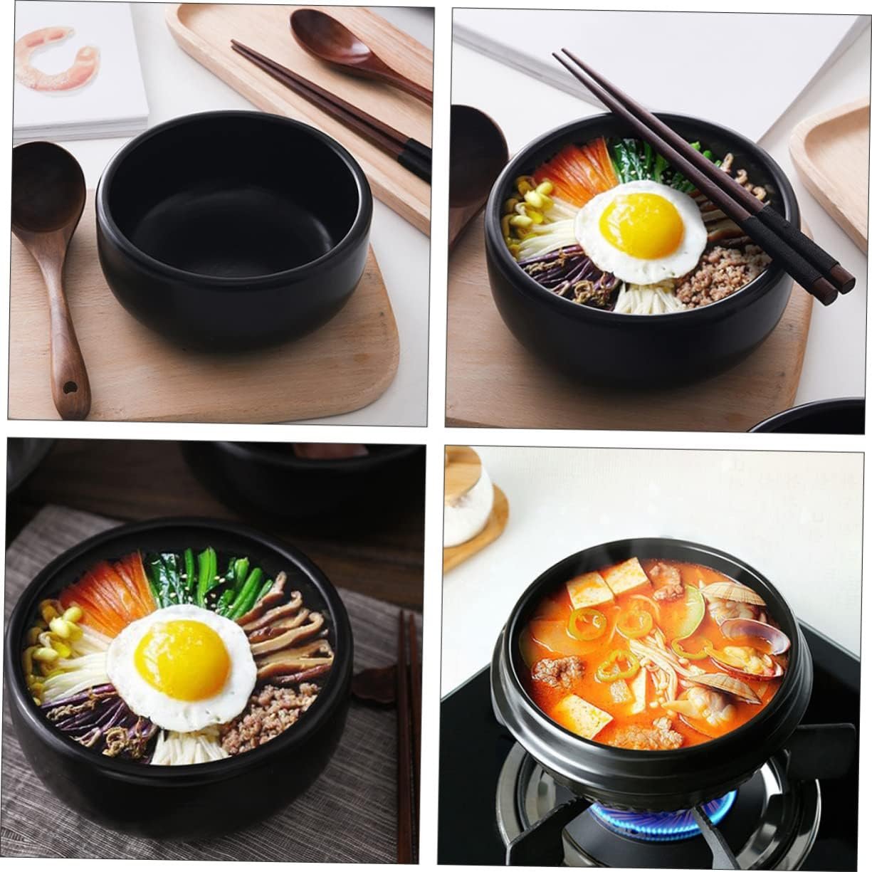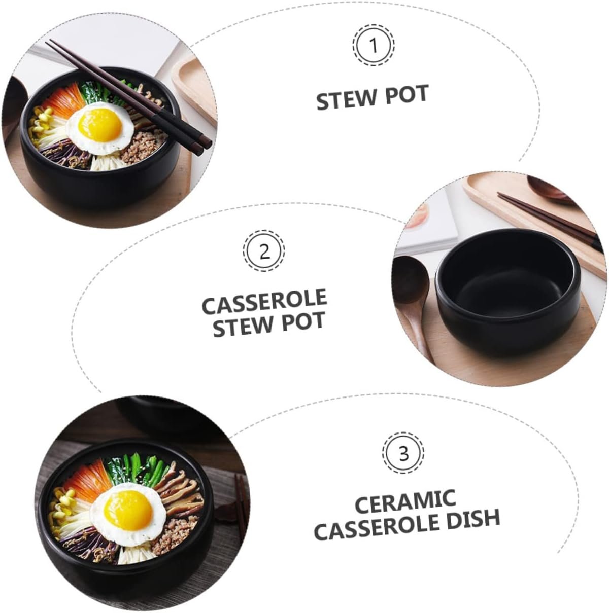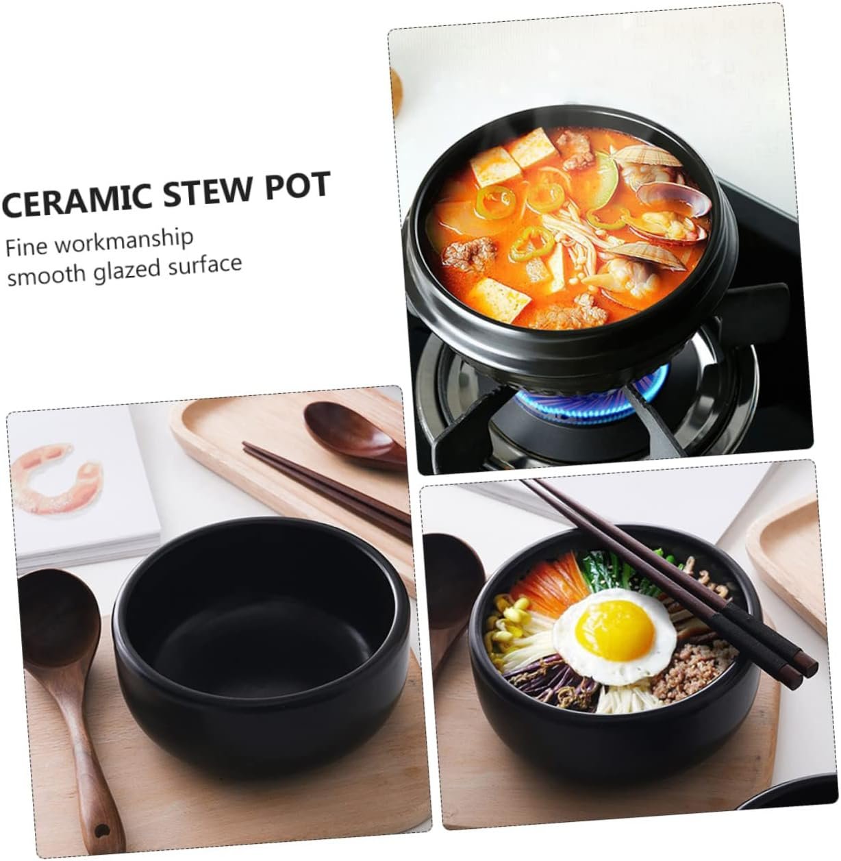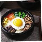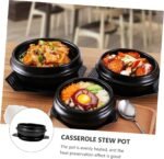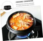 Cabilock 1pc Ceramic Bibimbap Pot Earthen Large Clay Induction Hot Pot with Divider Halal Cookware Rice Mud Terracotta Pots Cooking Casserole Dish Small Stoneware Braised Ceramics Black